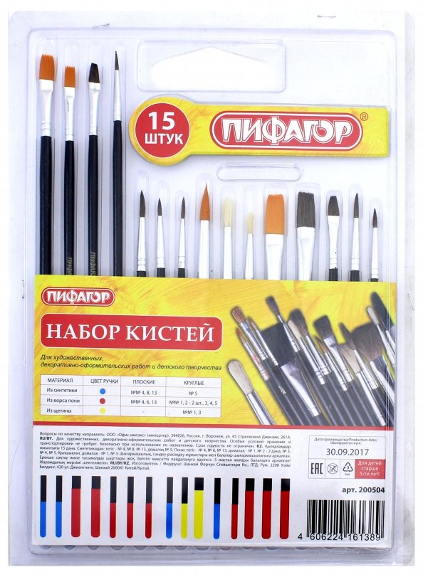 Набор кистей для художественных и декоративно-оформительских работ. В наборе 7 штук. Ворс: синтетика. Круглая №1-5, плоская №4, 6. Сделано в России.